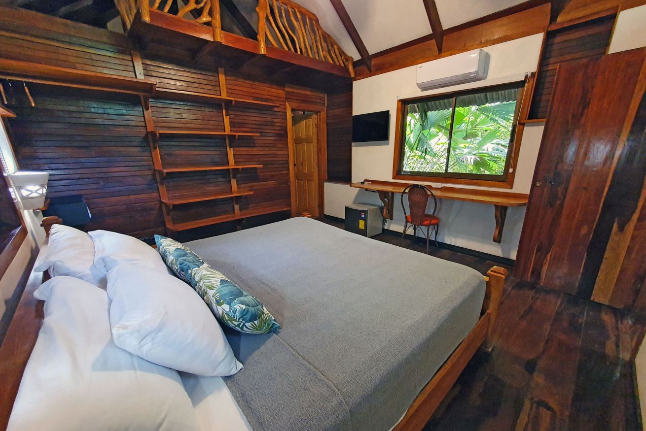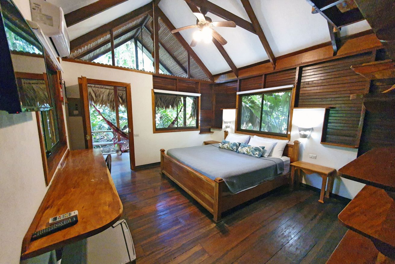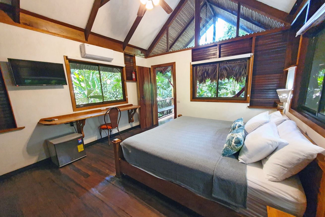 ¡Tu santuario privado en la selva te aguarda! Descubre nuestro bungalow, inmerso en el corazón de la jungla, donde el susurro de la naturaleza se fusiona con el confort moderno. Es el rincón perfecto para parejas. Disfruta de todas las comodidades: aire acondicionado, WiFi gratis, ventilador de techo y TV por cable de plasma 32". También te ofrecemos un secador de pelo, amenidades de baño y detalles prácticos como conexión USB, escritorio de trabajo y un amplio armario. Relájate en una lujosa cama king size tras un día explorando la selva. ¡Haz tu reserva y sumérgete en una aventura donde cada detalle te conecta con la naturaleza!