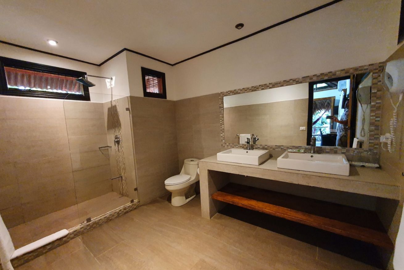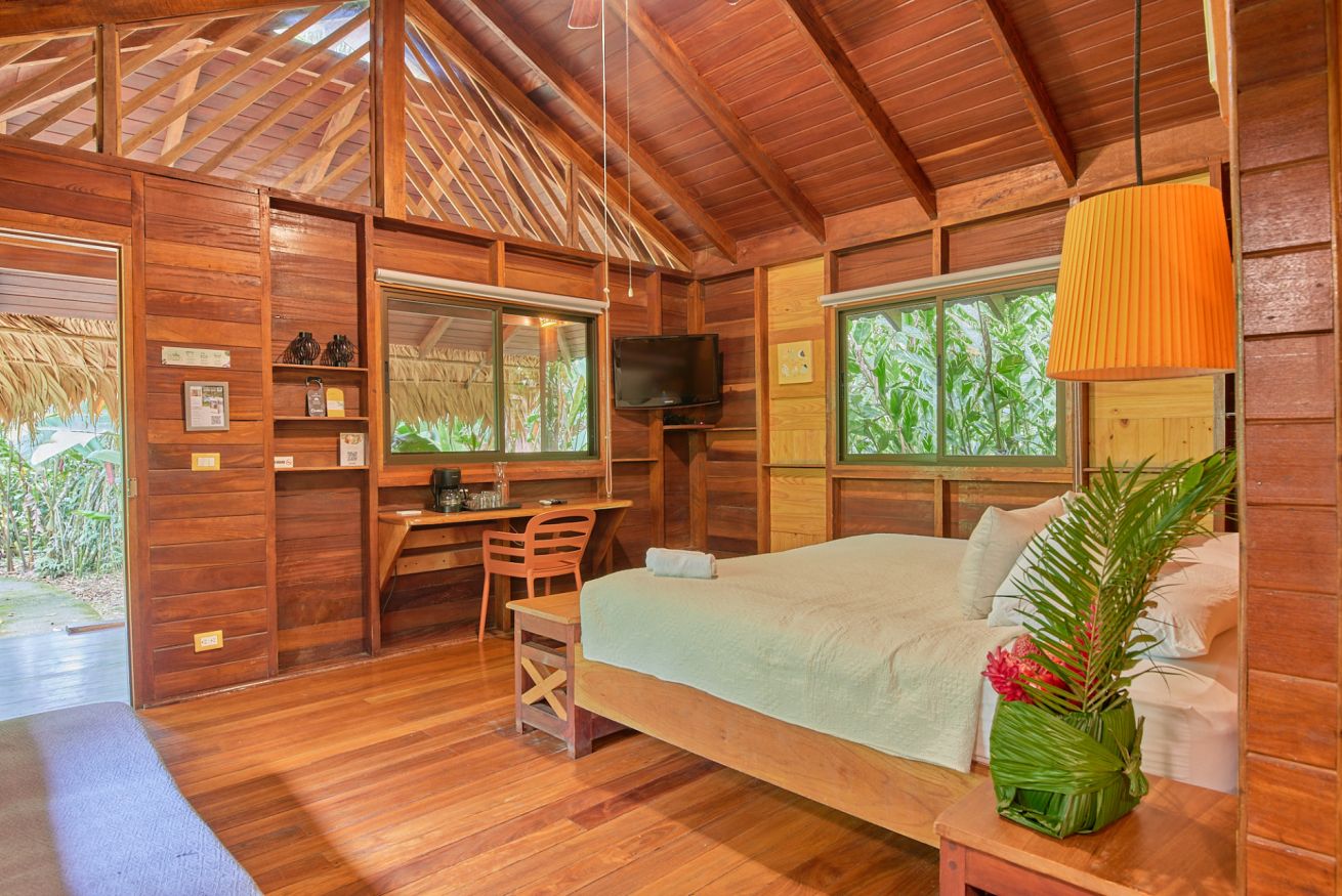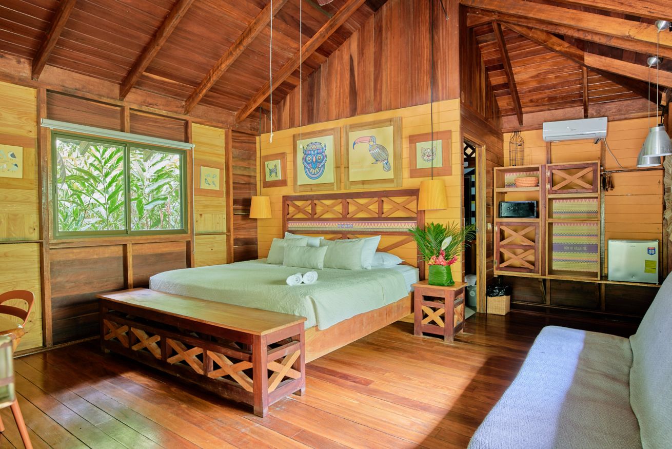 ¡Tu santuario privado en la selva te aguarda! Descubre nuestro bungalow, inmerso en el corazón de la jungla, donde el susurro de la naturaleza se fusiona con el confort moderno. Es el rincón perfecto para parejas. Disfruta de todas las comodidades: aire acondicionado, WiFi gratis, ventilador de techo y TV por cable de plasma 32". También te ofrecemos un secador de pelo, amenidades de baño y detalles prácticos como conexión USB, escritorio de trabajo y un amplio armario. Relájate en una lujosa cama king size tras un día explorando la selva. ¡Haz tu reserva y sumérgete en una aventura donde cada detalle te conecta con la naturaleza!