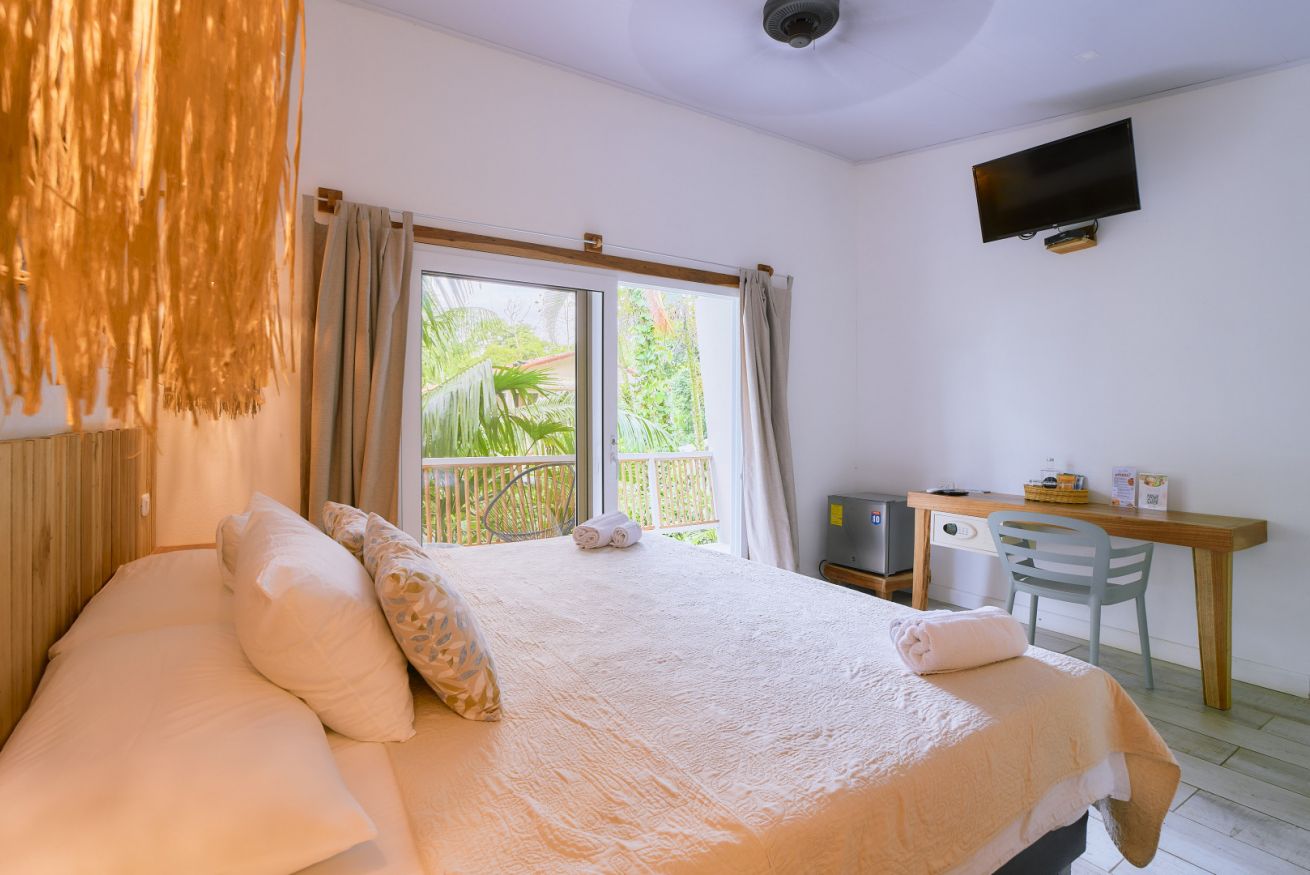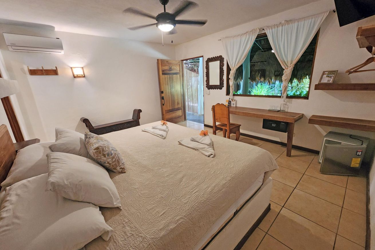 ¡Tu escapada junto al mar te espera aquí! Habitaciones con espléndida vista al jardín y un toque cercano a la playa, decoradas con inspiración marina contemporánea. Exclusivamente para parejas. Disfruta de comodidades de lujo: aire acondicionado, WiFi gratuito, ventilador de techo y TV por cable de plasma 32". Cuenta además con secador de pelo, amenidades de baño y detalles adicionales como conexión USB, escritorio de trabajo y amplio armario. Solo disponible con una lujosa cama King size. ¡Reserva ahora y siente el romance con cada susurro del mar!